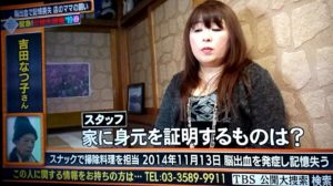 - TBS 緊急!公開大捜索スナックで勤務中に脳出血!記憶を失った女性のその後は?