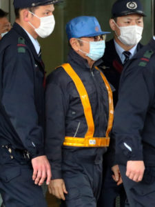 一部隠れていますが、ゴーン被告の左胸に会社名㈱〇〇ハウジングと書いてあるのがわかります。