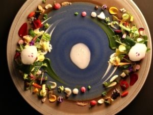 米田肇は自身の料理に「日常世界から非日常世界に入っていくときにどうスタートを切って、ここで少しサプライズを入れ、一回落ち着かせて、次にハイライトを持ってくる、というような流れをつくることに関しては、非常に意識的にやっています。味や見た目、食感や温度帯に関して、どうストーリーを付けるか」を考えて料理をしています。