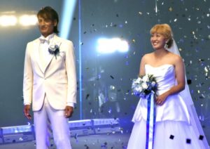 壇上でなれそめを聞かれた丸山は「きっかけは私が好きになったこと。もともと人間として大好きでしたが、今年に入ってから唇をもってかれたいなと思うようになりました」と告白。本並氏のタキシード姿を見て「顔も黒だし、黒い服ばっかりだから全然違う人に見えた」と大喜び。本並氏も「いつもジャージかユニホームしか見ていないのできれい。新鮮ですね」と笑みがはじけた。