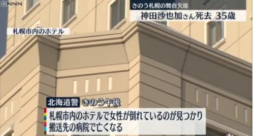 札幌市中央区北2条西1丁目のホテルの屋外スペースで、俳優の神田沙也加さん(35)が倒れているのを北海道警の警察官が発見しました。神田さんは市内の病院へ運ばれたが、死亡が確認された