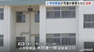 小学生の裸を盗撮したとして、警視庁調布署は21日までに、児童買春・ポルノ禁止法違反(製造)容疑などで小学校教諭木村康一郎容疑者(31)が逮捕されました。