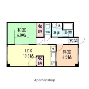 このマンションだとしたら家賃は3.2万円~3.8万円で、間取りは2LDKのようです。