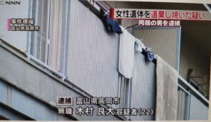 富山県警高岡署自宅で、同居する交際相手の無職小林志織さん(20)の遺体の一部を焼いたとして、木村良大容疑者を逮捕さしました。