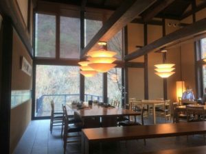 コシノヒロコデザインの店内で食器もコシノヒロコデザインです