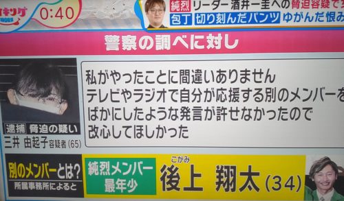 三井由起子容疑者純烈リーダー脅迫についてです。