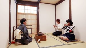 懐石風料理のあと、茶室にて茶席(抹茶表千家)の体験です。