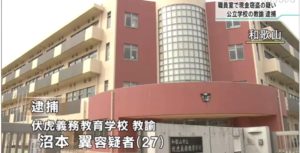 学校の職員室で同僚の現金を盗んだとして、和歌山市立伏虎義務教育学校の沼本翼先生が逮捕されました。