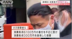 東京・立川市の貿易会社「ジャパンインベストワン」の社長・小川翔司容疑者ら2人は消費税約6100万円の還付を不正に受けた容疑で東京地検特捜部に逮捕されました。