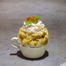 普通のかき氷には甘いさらさらのシロップがかけられていますが、エスプーマはそのかけているシロップ泡状にして提供しています。