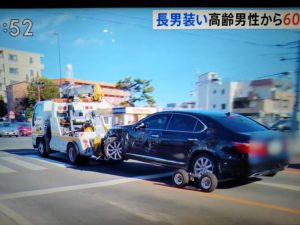 こちらが事故のあとの柴田容疑者の車(レクサス)がレッカーされる画像です。