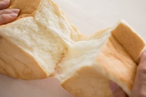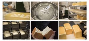 食パンに使われる“仕込み水”を開発・研究し、通常の天然水よりもph値の高いアルカリイオン水を使用し、甘く、柔らかく、口溶けの良い食パンが出来上がりました。