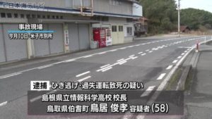 島根県立情報科学高校長の鳥居俊孝容疑者(58)がを自動車運転処罰法違反(過失致死)と道交法違反(ひき逃げ)の疑いで逮捕されました。