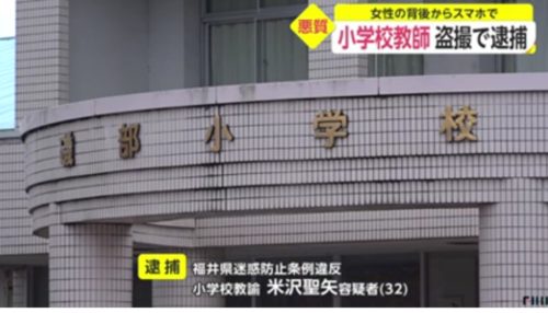 福井署と県警少年女性安全課は1日、福井市内で買い物中の女性のスカートの中を盗撮したとして、坂井市内の公立小学校教諭で福井市下荒井町の米澤聖矢容疑者(32)を県迷惑防止条例違反の疑いで現行犯逮捕したと発表した。(12月2日)